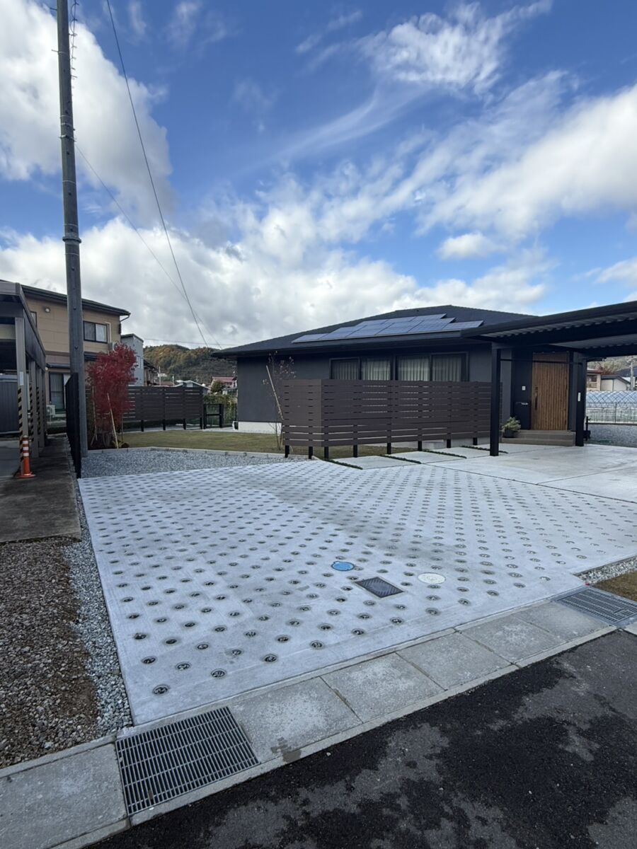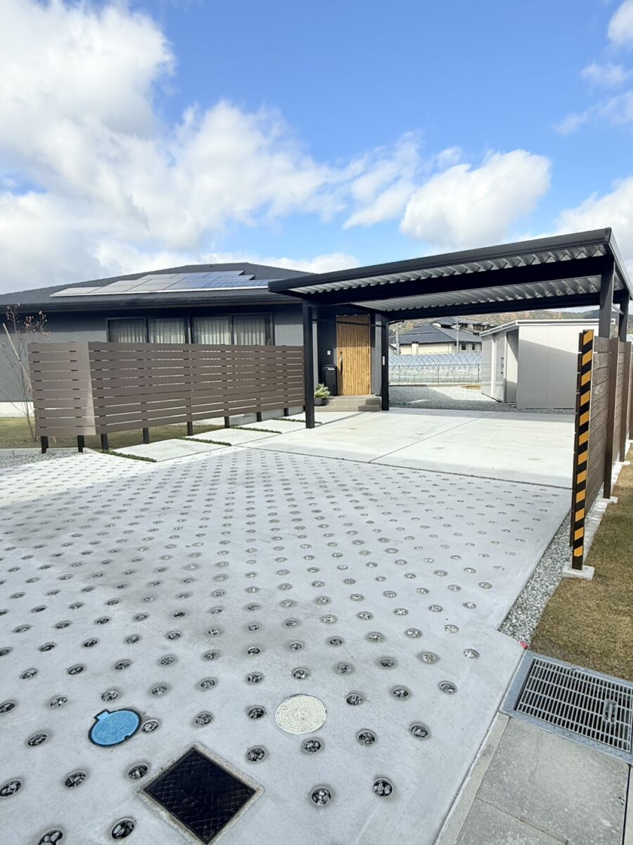 外構工事一式の請負、カーポート、土間コンクリート、物置、敷き砂利